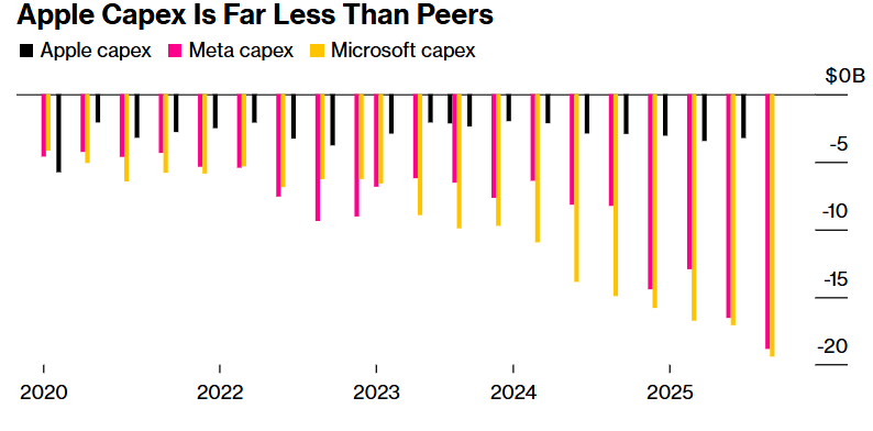 Core Viewpoint - Apple has adopted a conservative "cost-saving AI" strategy, which has now positioned the company as both a "safe haven" and an "AI beta" investment amid the ongoing AI investment wave, contrasting with other tech giants that have heavily invested in AI infrastructure [1][2][10] Group 1: Investment Positioning - Apple is viewed as a potential winner in the AI wave without the heavy capital expenditure risks faced by competitors, supported by strong free cash flow and the belief that "AI inference blue ocean" and "physical AI" will become new revenue engines for the company [2][4] - Unlike other tech giants, Apple does not face the existential question of the return on massive AI investments, allowing it to leverage cutting-edge AI models from other companies to enhance its iPhone user experience without incurring significant infrastructure costs [3][10] Group 2: Capital Expenditure Comparison - Apple's projected capital expenditure for the current fiscal year is approximately $14 billion, significantly lower than Microsoft's expected over $94 billion and Meta's forecast of over $70 billion, despite Meta's smaller market cap [7][8] - This difference in capital expenditure has resulted in Apple's stock underperforming compared to peers in an AI-driven market, with a year-to-date increase of only 7.6% compared to substantial gains for companies like Alphabet and Nvidia [8][9] Group 3: Market Performance and Sentiment - Despite a mixed earnings report and unexpected revenue decline in China, Apple's stock rose nearly 3%, contrasting with declines in stocks of other tech giants facing heavy AI spending and disappointing revenue outlooks [9][10] - Apple's stock has shown resilience during market downturns, highlighting its strong cash generation ability and solid balance sheet, making it a defensive choice compared to competitors with higher AI expenditure [10][12] Group 4: Future Growth Potential - Analysts believe that "physical AI" could be a significant growth engine for Apple, with potential revenue opportunities from its planned Apple Robotics series estimated at around $130 billion by 2040, representing a substantial portion of its current revenue base [11][12] - The ongoing optimism in the AI market suggests that even amid skepticism, large-cap tech companies like Apple are unlikely to lose their status as market favorites, with short-term pullbacks seen as buying opportunities [12][13]