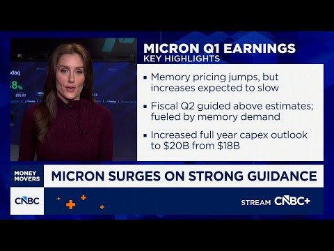 Let's begin though with this morning's big AI mover and that's Micron surging on the heels of earnings. How is the company's margin boom impacting some other players in the space. For that, we'll turn to Christina Parts and Nevilleis.Hi Christina. >> Hi Carl. Well, Micron, like you said, delivered a massive be and the stock is up dramatically because supply is getting tighter.The company's advanced memory production for AI is just completely sold out through all of 2026. Memory pricing jumped 20% quarter-ov ...